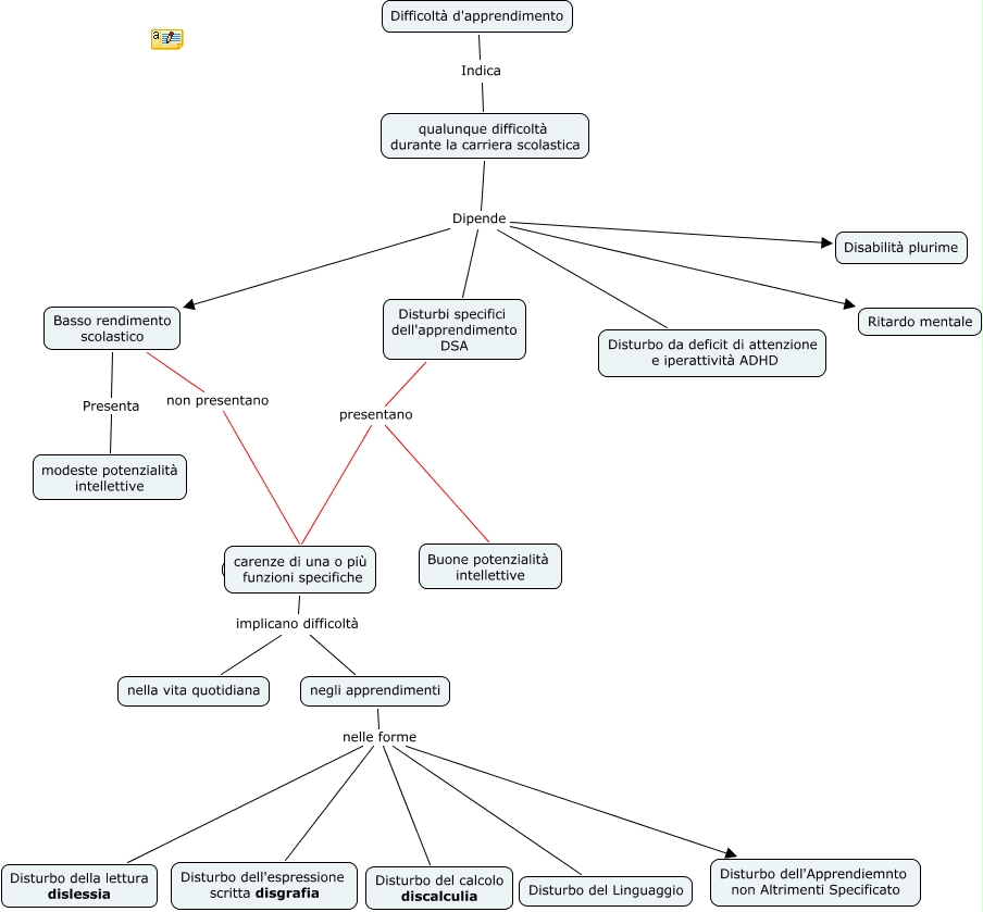 Questa Cmap, creata con IHMC CmapTools, contiene informazioni relative a: difficoltà d'apprendimento_rev_macchiarulo, negli apprendimenti nelle forme Disturbo del Linguaggio, negli apprendimenti nelle forme Disturbo dell'espressione scritta disgrafia, negli apprendimenti nelle forme Disturbo della lettura dislessia, Difficoltà d'apprendimento Indica qualunque difficoltà durante la carriera scolastica, carenze di una o più funzioni specifiche implicano difficoltà negli apprendimenti, qualunque difficoltà durante la carriera scolastica Dipende Disabilità plurime, Disturbi specifici dell'apprendimento DSA presentano carenze di una o più funzioni specifiche, carenze di una o più funzioni specifiche implicano difficoltà nella vita quotidiana, Basso rendimento scolastico Presenta modeste potenzialità intellettive, negli apprendimenti nelle forme Disturbo dell'Apprendiemnto non Altrimenti Specificato, Disturbi specifici dell'apprendimento DSA presentano Buone potenzialità intellettive, qualunque difficoltà durante la carriera scolastica Dipende Disturbo da deficit di attenzione e iperattività ADHD, qualunque difficoltà durante la carriera scolastica Dipende Ritardo mentale, qualunque difficoltà durante la carriera scolastica Dipende Disturbi specifici dell'apprendimento DSA, qualunque difficoltà durante la carriera scolastica Dipende Basso rendimento scolastico, Basso rendimento scolastico non presentano carenze di una o più funzioni specifiche, negli apprendimenti nelle forme Disturbo del calcolo discalculia