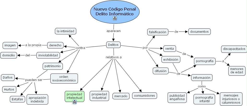 difusi�n de pornograf�a, difusi�n de informaci�n, derecho a la propia imagen, Delitos relativos a mercado, Delitos relativos a propiedad industrial, Delitos relativos a consumidores, Delitos relativos a propiedad intelectual, informaci�n como pornograf�a infantil, informaci�n como mensajes injuriosos o calumniosos, informaci�n como publicidad enga�osa, inviolabilidad del domicilio, pornograf�a a discapacitados, pornograf�a a menores de edad, Delitos por falsificaci�n, Delitos por exhibici�n, Delitos por difusi�n, Delitos por venta, orden socioecon�mico pueden ser Da�os, orden socioecon�mico pueden ser Hurtos, orden socioecon�mico pueden ser apropiaci�n indebida, orden socioecon�mico pueden ser Estafas, falsificaci�n de documentos, venta de pornograf�a, Nuevo C�digo Penal Delito Inform�tico aparecen Delitos, Delitos contra la intimidad, Delitos contra patrimonio, Delitos contra derecho, Delitos contra inviolabilidad, Delitos contra orden socioecon�mico, exhibici�n de pornograf�a, exhibici�n de informaci�n, patrimonio pueden ser Da�os, patrimonio pueden ser Hurtos, patrimonio pueden ser apropiaci�n indebida, patrimonio pueden ser Estafas