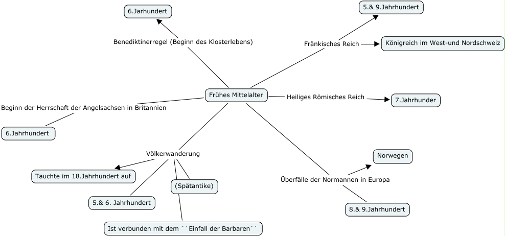 Dieses mit IHMC CmapTools erstellte CMap hat Informationen bezüglich: Frühmittelalter, Frühes Mittelalter Fränkisches Reich 5.& 9.Jahrhundert, Frühes Mittelalter Benediktinerregel (Beginn des Klosterlebens) 6.Jarhundert, Frühes Mittelalter Fränkisches Reich Königreich im West-und Nordschweiz, Frühes Mittelalter Völkerwanderung Tauchte im 18.Jahrhundert auf, Frühes Mittelalter Heiliges Römisches Reich 7.Jahrhunder, Frühes Mittelalter Völkerwanderung 5.& 6. Jahrhundert, Frühes Mittelalter Völkerwanderung (Spätantike), Frühes Mittelalter Völkerwanderung Ist verbunden mit dem ``Einfall der Barbaren``, Frühes Mittelalter Beginn der Herrschaft der Angelsachsen in Britannien 6.Jahrhundert, Frühes Mittelalter Überfälle der Normannen in Europa 8.& 9.Jahrhundert, Frühes Mittelalter Überfälle der Normannen in Europa Norwegen