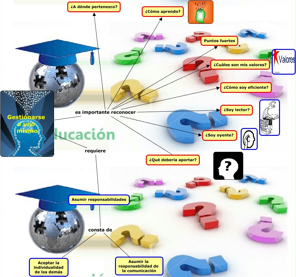Este Cmap, tiene información relacionada con: Gestionarse a uno mismo, Gestiónarse a uno mismo es importante reconocer ¿Qué debería aportar?, Asumir responsabilidades consta de Asumir la responsabilidad de la comunicación, Gestiónarse a uno mismo es importante reconocer ¿A dónde pertenezco?, Asumir responsabilidades consta de Aceptar la individualidad de los demás, Gestiónarse a uno mismo es importante reconocer ¿Cuáles son mis valores?, Gestiónarse a uno mismo es importante reconocer Puntos fuertes, Gestiónarse a uno mismo es importante reconocer ¿Cómo soy eficiente?, Gestiónarse a uno mismo es importante reconocer ¿Soy oyente?, Gestiónarse a uno mismo es importante reconocer ¿Soy lector?, Gestiónarse a uno mismo requiere Asumir responsabilidades, Gestiónarse a uno mismo es importante reconocer ¿Cómo aprendo?