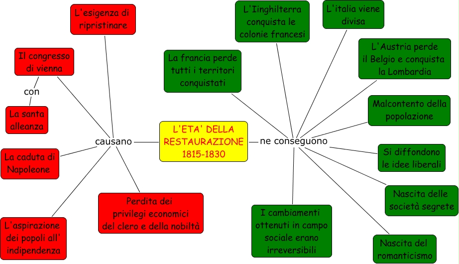 Questa Cmap, creata con IHMC CmapTools, contiene informazioni relative a: L'ETà DELLA RESTAURAZIONE, L'ETA' DELLA RESTAURAZIONE 1815-1830 causano L'esigenza di ripristinare, L'ETA' DELLA RESTAURAZIONE 1815-1830 ne conseguono Malcontento della popolazione, L'ETA' DELLA RESTAURAZIONE 1815-1830 ne conseguono I cambiamenti ottenuti in campo sociale erano irreversibili, L'ETA' DELLA RESTAURAZIONE 1815-1830 ne conseguono La francia perde tutti i territori conquistati, L'ETA' DELLA RESTAURAZIONE 1815-1830 ne conseguono Nascita delle società segrete, L'ETA' DELLA RESTAURAZIONE 1815-1830 causano Perdita dei privilegi economici del clero e della nobiltà, L'ETA' DELLA RESTAURAZIONE 1815-1830 causano Il congresso di vienna, L'ETA' DELLA RESTAURAZIONE 1815-1830 causano L'aspirazione dei popoli all' indipendenza, L'ETA' DELLA RESTAURAZIONE 1815-1830 ne conseguono L'Austria perde il Belgio e conquista la Lombardia, L'ETA' DELLA RESTAURAZIONE 1815-1830 causano La caduta di Napoleone, L'ETA' DELLA RESTAURAZIONE 1815-1830 ne conseguono Si diffondono le idee liberali, Il congresso di vienna con La santa alleanza, L'ETA' DELLA RESTAURAZIONE 1815-1830 ne conseguono Nascita del romanticismo, L'ETA' DELLA RESTAURAZIONE 1815-1830 ne conseguono L'italia viene divisa, L'ETA' DELLA RESTAURAZIONE 1815-1830 ne conseguono L'Iinghilterra conquista le colonie francesi