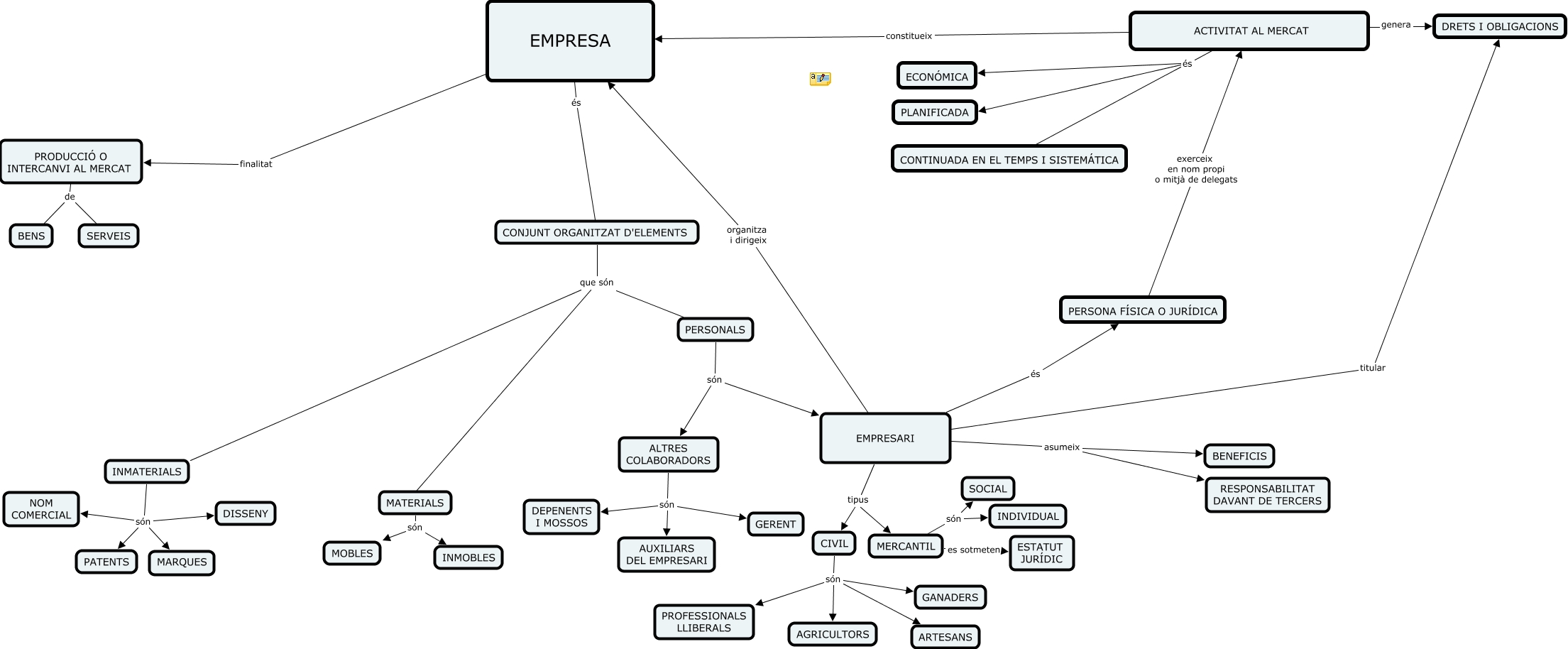 Aquest mapa conceptual conté informació relacionada amb: ESCENARI 1, EMPRESARI tipus MERCANTIL, PERSONALS són EMPRESARI, CIVIL són GANADERS, ACTIVITAT AL MERCAT constitueix EMPRESA, MERCANTIL es sotmeten ESTATUT JURÍDIC, EMPRESARI tipus CIVIL, PERSONA FÍSICA O JURÍDICA exerceix en nom propi o mitjà de delegats ACTIVITAT AL MERCAT, CONJUNT ORGANITZAT D'ELEMENTS que són INMATERIALS, MATERIALS són MOBLES, PRODUCCIÓ O INTERCANVI AL MERCAT de BENS, EMPRESA és CONJUNT ORGANITZAT D'ELEMENTS, INMATERIALS són DISSENY, INMATERIALS són MARQUES, MERCANTIL són SOCIAL, EMPRESARI asumeix RESPONSABILITAT DAVANT DE TERCERS, ACTIVITAT AL MERCAT és CONTINUADA EN EL TEMPS I SISTEMÁTICA, EMPRESA finalitat PRODUCCIÓ O INTERCANVI AL MERCAT, CIVIL són AGRICULTORS, ACTIVITAT AL MERCAT és PLANIFICADA, INMATERIALS són NOM COMERCIAL