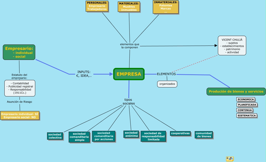 Este Cmap, tiene información relacionada con: CMAPS1- CONFECCIONS REUNIDES, EMPRESA tipos sociales sociedad comanditaria simple, Empresario: - individual - social INPUTS: €, IDEA,.. EMPRESA, EMPRESA ELEMENTOS Produción de bienes y servicios, EMPRESA tipos sociales sociedad anónima, EMPRESA tipos sociales sociedad comanditaria por acciones, EMPRESA elementos que la componen VICENT CHULIÀ - sujetos - establecimientos - patrimonio - actividad, EMPRESA elementos que la componen INMATERIALES: Patentes Marcas ..., EMPRESA tipos sociales sociedad colectiva, Empresario: - individual - social Estatuto del empresario: - Contabilidad - Publicidad registral - Responsabilidad (1911Cc.), EMPRESA ELEMENTOS organizados, EMPRESA tipos sociales cooperativas, EMPRESA tipos sociales sociedad de responsabilidad limitada, EMPRESA elementos que la componen PERSONALES: Empresario Trabajadores, EMPRESA ELEMENTOS VICENT CHULIÀ - sujetos - establecimientos - patrimonio - actividad, - Contabilidad - Publicidad registral - Responsabilidad (1911Cc.) Asunción de Riesgo Empresario individual- SÍ Empresario social- NO, EMPRESA elementos que la componen MATERIALES: Muebles Inmuebles