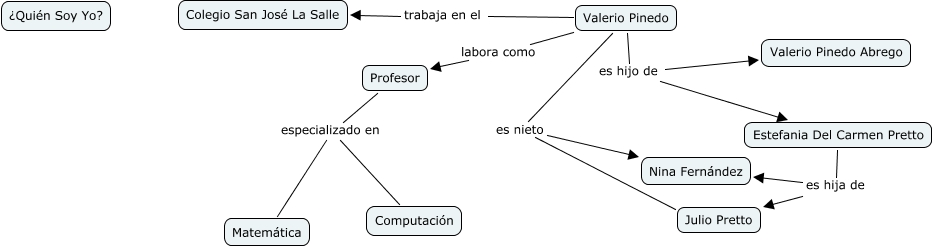 Este Cmap, tiene información relacionada con: Biografia, Valerio Pinedo es hijo de Valerio Pinedo Abrego, Valerio Pinedo es hijo de Estefania Del Carmen Pretto, Profesor especializado en Matemática, Valerio Pinedo trabaja en el Colegio San José La Salle, Profesor especializado en Computación, Estefania Del Carmen Pretto es hija de Julio Pretto, Estefania Del Carmen Pretto es hija de Nina Fernández, Valerio Pinedo es nieto Julio Pretto, Valerio Pinedo labora como Profesor, Valerio Pinedo es nieto Nina Fernández