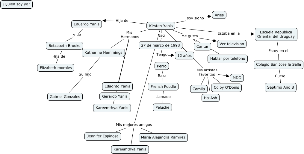 Este Cmap, tiene información relacionada con: Biografía, Kirsten Yanis Me gusta Ver television, 27 de marzo de 1998 Tengo 12 años, Kirsten Yanis Me gusta Hablar por telefono, Kirsten Yanis soy signo Aries, Kirsten Yanis Mis artistas favoritos MDO, Kirsten Yanis Me gusta Cantar, Kirsten Yanis Mis Hermanos Kareemthya Yanis, Kirsten Yanis Mis artistas favoritos Camila, Kirsten Yanis Hija de Eduardo Yanis, Kirsten Yanis Mis mejores amigos Jennifer Espinosa, Colegio San Jose la Salle Curso Séptimo Año B, Katherine Hemmings Su hijo Gabriel Gonzales, Frensh Poodle Llamado Peluche, Eduardo Yanis y de Betzabeth Brooks, Perro Raza Frensh Poodle, Kirsten Yanis Mis mejores amigos Kareemthya Yanis, Kirsten Yanis Estaba en la Escuela República Oriental del Uruguay, Escuela República Oriental del Uruguay Estoy en el Colegio San Jose la Salle, Kirsten Yanis Mis artistas favoritos Ha-Ash, Kirsten Yanis Mis mejores amigos Maria Alejandra Ramirez