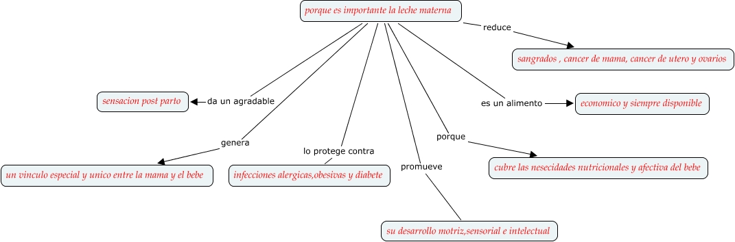 Este Cmap, tiene información relacionada con: la leche materna 7b, porque es importante la leche materna da un agradable sensacion post parto, porque es importante la leche materna porque cubre las nesecidades nutricionales y afectiva del bebe, porque es importante la leche materna es un alimento economico y siempre disponible, porque es importante la leche materna promueve su desarrollo motriz,sensorial e intelectual, porque es importante la leche materna genera un vinculo especial y unico entre la mama y el bebe, porque es importante la leche materna reduce sangrados , cancer de mama, cancer de utero y ovarios, porque es importante la leche materna lo protege contra infecciones alergicas,obesivas y diabete