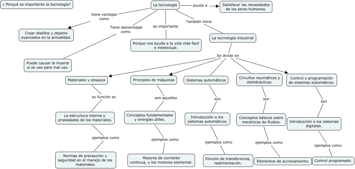 Este Cmap, tiene información relacionada con: la tecnología 7b, Conceptos fundamentales y energías útiles. ejemplos como Motores de corriente continua, y los motores elemental., Control y programación de sistemas automáticos. son Introducción a los sistemas digitales., Conceptos básicos sobre mecánicas de fluidos. ejemplos como Elementos de accionamiento., Sistemas automáticos son Introducción a los sistemas automáticos., La tecnología industrial Se divide en Circuitos neumáticos y olehidráulicos., Circuitos neumáticos y olehidráulicos. son Conceptos básicos sobre mecánicas de fluidos., Principios de máquinas son aquellos Conceptos fundamentales y energías útiles., Introducción a los sistemas digitales. ejemplos como Control programado., La tecnología es importante Porque nos ayuda a la vida más facil e intelectual., La tecnología Tiene desventajas como Puede causar la muerte si se usa para mal uso., Materiales y ensayos su función es La estructura interna y pripiedades de los materiales., La estructura interna y pripiedades de los materiales. ejemplos como Normas de precaución y seguridad en el manejo de los materiales., La tecnología tiene ventajas como Crear diseños y objetos avanzados en la actualidad., La tecnología industrial Se divide en Control y programación de sistemas automáticos., Introducción a los sistemas automáticos. ejemplos como fUnción de transferencia, realimentación., La tecnología industrial Se divide en Principios de máquinas, La tecnología industrial Se divide en Materiales y ensayos, La tecnología ayuda a Satisfacer las necesidades de los seres humanos., La tecnología industrial Se divide en Sistemas automáticos, La tecnología También tiene La tecnología industrial