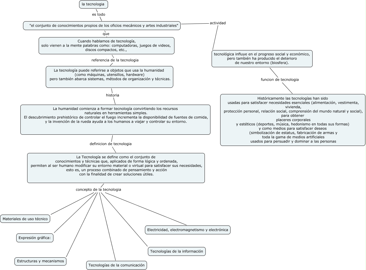 Este Cmap, tiene información relacionada con: tecnologia 8c, La Tecnología se define como el conjunto de conocimientos y técnicas que, aplicados de forma lógica y ordenada, permiten al ser humano modificar su entorno material o virtual para satisfacer sus necesidades, esto es, un proceso combinado de pensamiento y acción con la finalidad de crear soluciones útiles. concepto de la tecnologia Tecnologías de la información, La tecnología puede referirse a objetos que usa la humanidad (como máquinas, utensillos, hardware) pero también abarca sistemas, métodos de organización y técnicas. historia La humanidad comienza a formar tecnología convirtiendo los recursos naturales en herramientas simples. El descubrimiento prehistórico de controlar el fuego incrementa la disponibilidad de fuentes de comida, y la invención de la rueda ayuda a los humanos a viajar y controlar su entorno., La Tecnología se define como el conjunto de conocimientos y técnicas que, aplicados de forma lógica y ordenada, permiten al ser humano modificar su entorno material o virtual para satisfacer sus necesidades, esto es, un proceso combinado de pensamiento y acción con la finalidad de crear soluciones útiles. concepto de la tecnologia Electricidad, electromagnetismo y electrónica, La Tecnología se define como el conjunto de conocimientos y técnicas que, aplicados de forma lógica y ordenada, permiten al ser humano modificar su entorno material o virtual para satisfacer sus necesidades, esto es, un proceso combinado de pensamiento y acción con la finalidad de crear soluciones útiles. concepto de la tecnologia Tecnologías de la comunicación, La Tecnología se define como el conjunto de conocimientos y técnicas que, aplicados de forma lógica y ordenada, permiten al ser humano modificar su entorno material o virtual para satisfacer sus necesidades, esto es, un proceso combinado de pensamiento y acción con la finalidad de crear soluciones útiles. concepto de la tecnologia Expresión gráfica:, La humanidad comienza a formar tecnología convirtiendo los recursos naturales en herramientas simples. El descubrimiento prehistórico de controlar el fuego incrementa la disponibilidad de fuentes de comida, y la invención de la rueda ayuda a los humanos a viajar y controlar su entorno. definicion de tecnologia La Tecnología se define como el conjunto de conocimientos y técnicas que, aplicados de forma lógica y ordenada, permiten al ser humano modificar su entorno material o virtual para satisfacer sus necesidades, esto es, un proceso combinado de pensamiento y acción con la finalidad de crear soluciones útiles., Cuando hablamos de tecnología, solo vienen a la mente palabras como: computadoras, juegos de videos, discos compactos, etc., referencia de la tecnologia La tecnología puede referirse a objetos que usa la humanidad (como máquinas, utensillos, hardware) pero también abarca sistemas, métodos de organización y técnicas., la tecnologia es todo "el conjunto de conocimientos propios de los oficios mecánicos y artes industriales", "el conjunto de conocimientos propios de los oficios mecánicos y artes industriales" actividad tecnológica influye en el progreso social y económico, pero también ha producido el deterioro de nuestro entorno (biosfera)., La Tecnología se define como el conjunto de conocimientos y técnicas que, aplicados de forma lógica y ordenada, permiten al ser humano modificar su entorno material o virtual para satisfacer sus necesidades, esto es, un proceso combinado de pensamiento y acción con la finalidad de crear soluciones útiles. concepto de la tecnologia Estructuras y mecanismos, "el conjunto de conocimientos propios de los oficios mecánicos y artes industriales" que Cuando hablamos de tecnología, solo vienen a la mente palabras como: computadoras, juegos de videos, discos compactos, etc.,, tecnológica influye en el progreso social y económico, pero también ha producido el deterioro de nuestro entorno (biosfera). funcion de tecnologia Históricamente las tecnologías han sido usadas para satisfacer necesidades esenciales (alimentación, vestimenta, vivienda, protección personal, relación social, comprensión del mundo natural y social), para obtener placeres corporales y estéticos (deportes, música, hedonismo en todas sus formas) y como medios para satisfacer deseos (simbolización de estatus, fabricación de armas y toda la gama de medios artificiales usados para persuadir y dominar a las personas, La Tecnología se define como el conjunto de conocimientos y técnicas que, aplicados de forma lógica y ordenada, permiten al ser humano modificar su entorno material o virtual para satisfacer sus necesidades, esto es, un proceso combinado de pensamiento y acción con la finalidad de crear soluciones útiles. concepto de la tecnologia Materiales de uso técnico