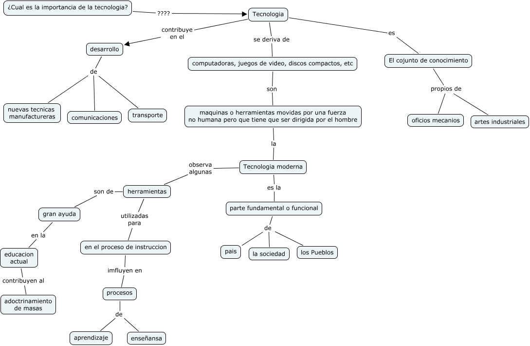 Este Cmap, tiene información relacionada con: Tecnologia 8c, educacion actual contribuyen al adoctrinamiento de masas, Tecnologia moderna observa algunas herramientas, parte fundamental o funcional de los Pueblos, desarrollo de transporte, Tecnologia es El cojunto de conocimiento, procesos de aprendizaje, Tecnologia moderna es la parte fundamental o funcional, Tecnologia contribuye en el desarrollo, herramientas utilizadas para en el proceso de instruccion, computadoras, juegos de video, discos compactos, etc son maquinas o herramientas movidas por una fuerza no humana pero que tiene que ser dirigida por el hombre, herramientas son de gran ayuda, desarrollo de nuevas tecnicas manufactureras, en el proceso de instruccion imfluyen en procesos, maquinas o herramientas movidas por una fuerza no humana pero que tiene que ser dirigida por el hombre la Tecnologia moderna, procesos de enseñansa, desarrollo de comunicaciones, El cojunto de conocimiento propios de oficios mecanios, Tecnologia se deriva de computadoras, juegos de video, discos compactos, etc, parte fundamental o funcional de la sociedad, gran ayuda en la educacion actual