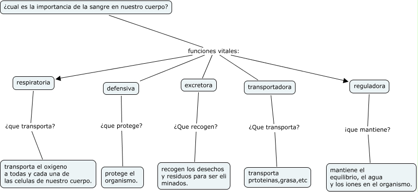Este Cmap, tiene información relacionada con: la sangre, reguladora ¡que mantiene? mantiene el equilibrio, el agua y los iones en el organismo., ¿cual es la importancia de la sangre en nuestro cuerpo? funciones vitales: reguladora, ¿cual es la importancia de la sangre en nuestro cuerpo? funciones vitales: respiratoria, defensiva ¿que protege? protege el organismo., ¿cual es la importancia de la sangre en nuestro cuerpo? funciones vitales: excretora, ¿cual es la importancia de la sangre en nuestro cuerpo? funciones vitales: transportadora, transportadora ¿Que transporta? transporta prtoteinas,grasa,etc, excretora ¿Que recogen? recogen los desechos y residuos para ser eli minados., ¿cual es la importancia de la sangre en nuestro cuerpo? funciones vitales: defensiva, respiratoria ¿que transporta? transporta el oxigeno a todas y cada una de las celulas de nuestro cuerpo.