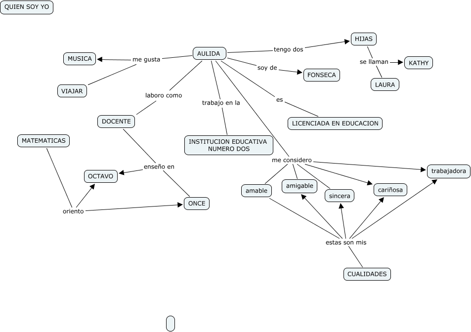 Este Cmap, tiene información relacionada con: Aulida Brito Jiménez, amable estas son mis trabajadora, AULIDA me gusta MUSICA, MATEMATICAS oriento OCTAVO, HIJAS se llaman LAURA, AULIDA me considero sincera, AULIDA me considero amigable, AULIDA laboro como DOCENTE, amable estas son mis CUALIDADES, AULIDA trabajo en la INSTITUCION EDUCATIVA NUMERO DOS, HIJAS se llaman KATHY, AULIDA es LICENCIADA EN EDUCACION, AULIDA soy de FONSECA, amable estas son mis cariñosa, AULIDA tengo dos HIJAS, AULIDA me gusta VIAJAR, MATEMATICAS oriento ONCE, AULIDA me considero amable, amable estas son mis sincera, DOCENTE enseño en ONCE, AULIDA me considero trabajadora