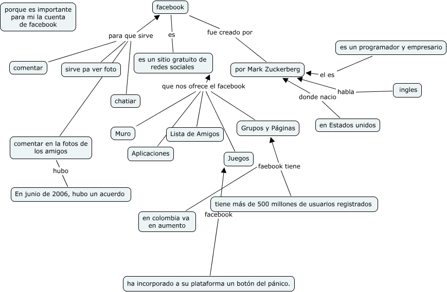 Este Cmap, tiene información relacionada con: facebook, chatiar para que sirve facebook, comentar para que sirve facebook, ingles habla por Mark Zuckerberg, en Estados unidos donde nacio por Mark Zuckerberg, en colombia va en aumento faebook tiene Grupos y Páginas, Aplicaciones que nos ofrece el facebook es un sitio gratuito de redes sociales, comentar en la fotos de los amigos hubo En junio de 2006, hubo un acuerdo, Juegos que nos ofrece el facebook es un sitio gratuito de redes sociales, tiene más de 500 millones de usuarios registrados faebook tiene Grupos y Páginas, comentar en la fotos de los amigos para que sirve facebook, facebook es es un sitio gratuito de redes sociales, Lista de Amigos que nos ofrece el facebook es un sitio gratuito de redes sociales, Grupos y Páginas que nos ofrece el facebook es un sitio gratuito de redes sociales, Muro que nos ofrece el facebook es un sitio gratuito de redes sociales, sirve pa ver foto para que sirve facebook, facebook fue creado por por Mark Zuckerberg, es un programador y empresario el es por Mark Zuckerberg, ha incorporado a su plataforma un botón del pánico. facebook Juegos