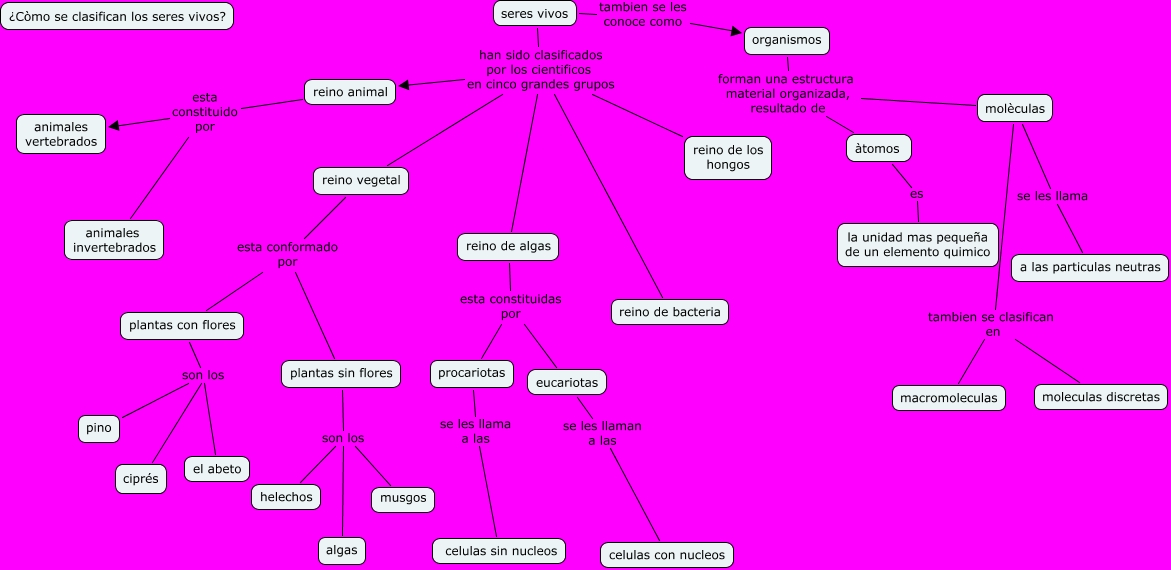 Este Cmap, tiene información relacionada con: seres vivos 8c, organismos forman una estructura material organizada, resultado de àtomos, algas son los helechos, macromoleculas tambien se clasifican en moleculas discretas, reino vegetal esta conformado por plantas con flores, molèculas tambien se clasifican en moleculas discretas, animales invertebrados esta constituido por animales vertebrados, àtomos es la unidad mas pequeña de un elemento quimico, eucariotas se les llaman a las celulas con nucleos, eucariotas esta constituidas por procariotas, el abeto son los pino, reino de algas han sido clasificados por los cientificos en cinco grandes grupos reino animal, molèculas se les llama a las particulas neutras, seres vivos han sido clasificados por los cientificos en cinco grandes grupos reino animal, seres vivos tambien se les conoce como organismos, plantas con flores son los pino, reino vegetal han sido clasificados por los cientificos en cinco grandes grupos reino animal, reino de algas esta constituidas por procariotas, plantas sin flores esta conformado por plantas con flores, reino animal esta constituido por animales vertebrados, musgos son los helechos