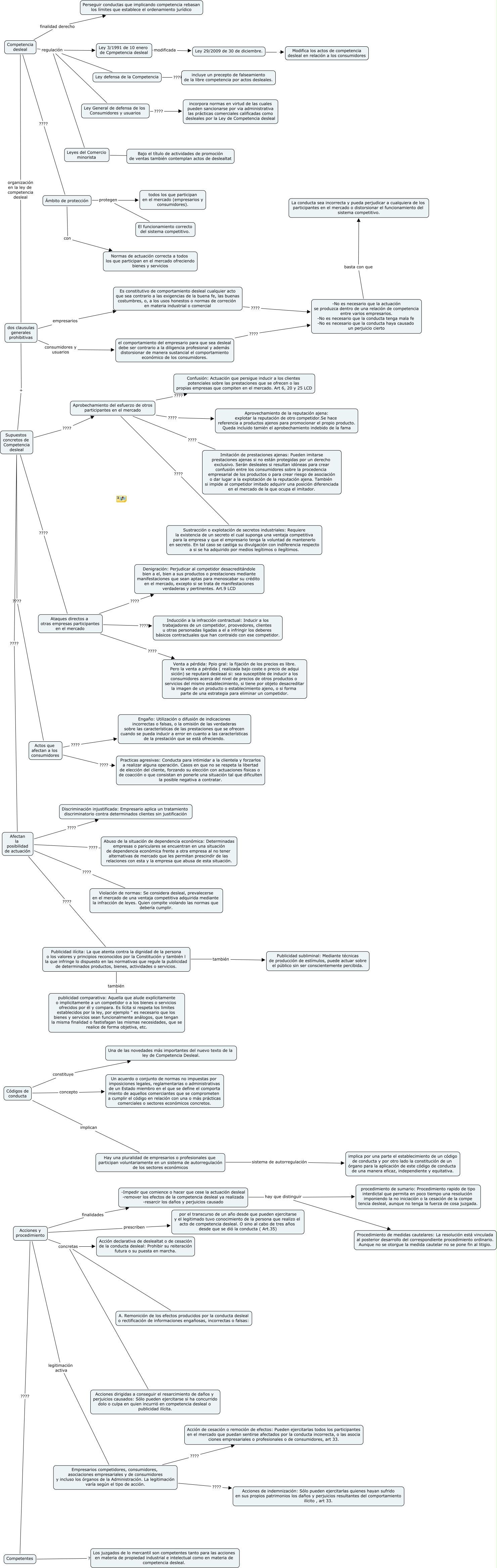 Este Cmap, tiene información relacionada con: competencia desleal, Acciones y procedimiento prescriben por el transcurso de un año desde que pueden ejercitarse y el legitimado tuvo conocimiento de la persona que realizo el acto de competencia desleal. O sino al cabo de tres años desde que se dió la conducta ( Art.35), Acciones y procedimiento ???? Competentes, dos clausulas generales prohibitivas empresarios Es constitutivo de comportamiento desleal cualquier acto que sea contrario a las exigencias de la buena fe, las buenas costumbres, o, a los usos honestos o normas de correción en materia industrial o comercial, Afectan la posibilidad de actuación ???? Discriminación injustificada: Empresario aplica un tratamiento discriminatorio contra determinados clientes sin justificación, dos clausulas generales prohibitivas consumidores y usuarios el comportamiento del empresario para que sea desleal debe ser contrario a la diligencia profesional y además distorsionar de manera sustancial el comportamiento económico de los consumidores., Acciones y procedimiento concretas Acción declarativa de deslealtat o de cesación de la conducta desleal: Prohibir su reiteración futura o su puesta en marcha., Supuestos concretos de Competencia desleal ???? Aprobechamiento del esfuerzo de otros participantes en el mercado, Aprobechamiento del esfuerzo de otros participantes en el mercado ???? Sustracción o explotación de secretos industriales: Requiere la existencia de un secreto el cual suponga una ventaja competitiva para la empresa y que el empresario tenga la voluntad de mantenerlo en secreto. En tal caso se castiga su divulgación con indiferencia respecto a si se ha adquirido por medios legítimos o ilegítimos., Ley 3/1991 de 10 enero de Cpmpetencia desleal modificada Ley 29/2009 de 30 de diciembre., Ámbito de protección protegen todos los que participan en el mercado (empresarios y consumidores)., Supuestos concretos de Competencia desleal ???? Ataques directos a otras empresas participantes en el mercado, Publicidad ilícita: La que atenta contra la dignidad de la persona o los valores y principios reconocidos por la Constitución y también l la que infringe lo dispuesto en las normativas que regule la publicidad de determinados productos, bienes, actividades o servicios. también Publicidad subliminal: Mediante técnicas de producción de estímulos, puede actuar sobre el público sin ser conscientemente percibida., Leyes del Comercio minorista ???? Bajo el título de actividades de promoción de ventas también contemplan actos de deslealtat, Códigos de conducta constituye Una de las novedades más importantes del nuevo texto de la ley de Competencia Desleal., Empresarios competidores, consumidores, asociaciones empresariales y de consumidores y incluso los órganos de la Administración. La legitimación varía según el tipo de acción. ???? Acciones de indemnización: Sólo pueden ejercitarlas quienes hayan sufrido en sus propios patrimonios los daños y perjuicios resultantes del comportamiento ilícito , art 33., Aprobechamiento del esfuerzo de otros participantes en el mercado ???? Aprovechamiento de la reputación ajena: explotar la reputación de otro competidor.Se hace referencia a productos ajenos para promocionar el propio producto. Queda incluido tamién el aprobechamiento indebido de la fama, -Impedir que comience o hacer que cese la actuación desleal -remover los efectos de la competencia desleal ya realizada -resarcir los daños y perjuicios causado hay que distinguir Procedimiento de medidas cautelares: La resolución está vinculada al posterior desarrollo del correspondiente procedimiento ordinario. Aunque no se otorgue la medida cautelar no se pone fin al litigio., Afectan la posibilidad de actuación ???? Publicidad ilícita: La que atenta contra la dignidad de la persona o los valores y principios reconocidos por la Constitución y también l la que infringe lo dispuesto en las normativas que regule la publicidad de determinados productos, bienes, actividades o servicios., Es constitutivo de comportamiento desleal cualquier acto que sea contrario a las exigencias de la buena fe, las buenas costumbres, o, a los usos honestos o normas de correción en materia industrial o comercial ???? -No es necesario que la actuación se produzca dentro de una relación de competencia entre varios empresarios. -No es necesario que la conducta tenga mala fe -No es necesario que la conducta haya causado un perjuicio cierto, Ataques directos a otras empresas participantes en el mercado ???? Denigración: Perjudicar al competidor desacreditándole bien a el, bien a sus productos o prestaciones mediante manifestaciones que sean aptas para menoscabar su crédito en el mercado, excepto si se trata de manifestaciones verdaderas y pertinentes. Art.9 LCD