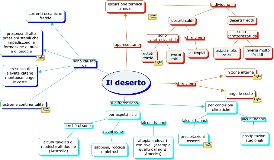 Questa Cmap, creata con IHMC CmapTools, contiene informazioni relative a: Deserto (Soranno,Mastro,Schiavone,Trotti), Il deserto si trovano lungo le coste, escursione termica annua si dividono in deserti freddi, Il deserto sono causati da presenza di elevate catene montuose lungo le coste, per aspetti fisici perchè ci sono alcuni tavolati di modesta altidudine (Australia), Il deserto rappresentano escursione termica annua, deserti caldi si trovano ai tropici, Il deserto si differenziano per condizioni climatiche, per condizioni climatiche alcuni hanno precipitazioni assenti, Il deserto sono causati da estreme continentalità, Il deserto sono causati da presenza di alte pressioni stabili che impediscono la formazione di nubi e di pioggie, per aspetti fisici alcuni sono sabbiosi, rocciosi e pietrosi, per condizioni climatiche alcuni hanno precipitazioni stagionali, deserti freddi sono caratterizzati da estati molto caldi, Il deserto si trovano in zone interne, deserti caldi sono caratterizzati da estati torridi, per aspetti fisici alcuni hanno altopiani elevari con riveli (esempio quello del nord America), Il deserto si differenziano per aspetti fisici, deserti freddi sono caratterizzati da inverni molto freddi, Il deserto sono causati da correnti oceaniche fredde, deserti caldi sono caratterizzati da inverni miti