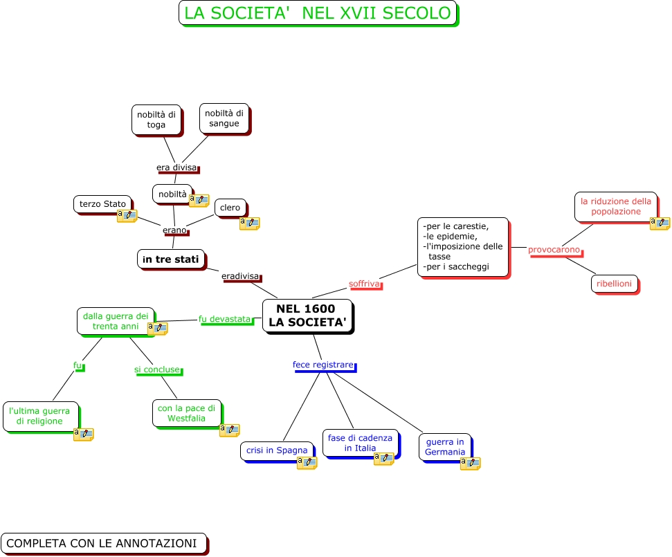Questa Cmap, creata con IHMC CmapTools, contiene informazioni relative a: la società del 1600 Di Corrado, NEL 1600 LA SOCIETA' fece registrare crisi in Spagna, nobiltà era divisa nobiltà di toga, dalla guerra dei trenta anni si concluse con la pace di Westfalia, in tre stati erano clero, NEL 1600 LA SOCIETA' fu devastata dalla guerra dei trenta anni, -per le carestie, -le epidemie, -l'imposizione delle tasse -per i saccheggi provocarono ribellioni, nobiltà era divisa nobiltà di sangue, in tre stati erano terzo Stato, -per le carestie, -le epidemie, -l'imposizione delle tasse -per i saccheggi provocarono la riduzione della popolazione, NEL 1600 LA SOCIETA' fece registrare fase di cadenza in Italia, NEL 1600 LA SOCIETA' fece registrare guerra in Germania, dalla guerra dei trenta anni fu l'ultima guerra di religione, NEL 1600 LA SOCIETA' soffriva -per le carestie, -le epidemie, -l'imposizione delle tasse -per i saccheggi, in tre stati erano nobiltà, NEL 1600 LA SOCIETA' eradivisa in tre stati