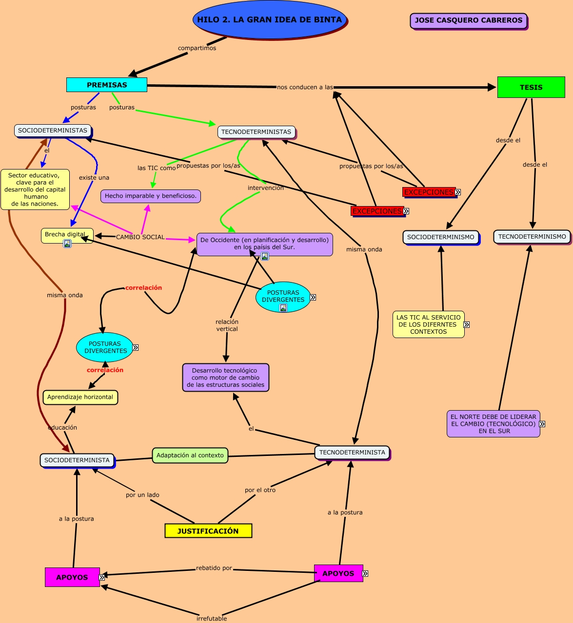 Este Cmap, tiene información relacionada con: Casquero_Cabreros_Jose_PEC2.2_Arg_Debate_ Hilo 2, HILO 2. LA GRAN IDEA DE BINTA compartimos PREMISAS, "Dentro de los paísis industrializados, la entrada de las TIC en los hogares, ha creado más divergencias sociales". irrefutable APOYOS, EXCEPCIONES propuestas por los/as SOCIODETERMINISTAS, APOYOS a la postura TECNODETERMINISTA, Relaciones verticales ???? De Occidente (en planificación y desarrollo) en los paísis del Sur., TECNODETERMINISTAS las TIC como Hecho imparable y beneficioso., APOYOS a la postura SOCIODETERMINISTA, LAS TIC AL SERVICIO DE LOS DIFERNTES CONTEXTOS ???? SOCIODETERMINISMO, EXCEPCIONES nos conducen a las TESIS, Relaciones horizontales ???? Brecha digital ., TESIS desde el TECNODETERMINISMO, EL NORTE DEBE DE LIDERAR EL CAMBIO (TECNOLÓGICO) EN EL SUR TECNODETERMINISMO, De Occidente (en planificación y desarrollo) en los paísis del Sur. relación vertical Desarrollo tecnológico como motor de cambio de las estructuras sociales, Adaptación al contexto ???? SOCIODETERMINISTA, TESIS desde el SOCIODETERMINISMO, "Dentro de los paísis industrializados, la entrada de las TIC en los hogares, ha creado más divergencias sociales". contraargumenta "Las conexiones de internet (en Africa) se duplicaron en 2010", PREMISAS posturas TECNODETERMINISTAS, TECNODETERMINISTA el Desarrollo tecnológico como motor de cambio de las estructuras sociales, PREMISAS posturas SOCIODETERMINISTAS, SOCIODETERMINISTA educación Aprendizaje horizontal