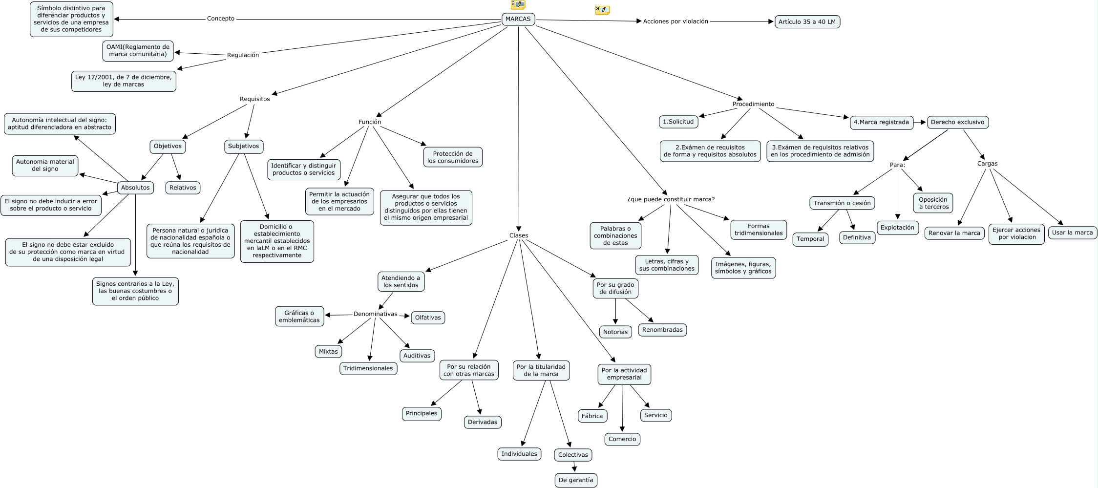 Este Cmap, tiene información relacionada con: Mapa conceptual Marcas, Derecho exclusivo Para: Oposición a terceros, Derecho exclusivo Para: Oposición a terceros, MARCAS Procedimiento 1.Solicitud, MARCAS ¿que puede constituir marca? Imágenes, figuras, símbolos y gráficos, Derecho exclusivo Para: Transmión o cesión, Objetivos ???? Absolutos, Atendiendo a los sentidos Denominativas Olfativas, Derecho exclusivo Cargas Usar la marca, MARCAS Regulación OAMI(Reglamento de marca comunitaria), Por su relación con otras marcas ???? Derivadas, MARCAS Clases Por la actividad empresarial, Absolutos ???? Autonomia material del signo, MARCAS ¿que puede constituir marca? Letras, cifras y sus combinaciones, Atendiendo a los sentidos Denominativas Tridimensionales, MARCAS Requisitos Objetivos, Atendiendo a los sentidos Denominativas Mixtas, Objetivos ???? Relativos, Derecho exclusivo Cargas Renovar la marca, Derecho exclusivo Cargas Ejercer acciones por violacion, Por la actividad empresarial ???? Comercio