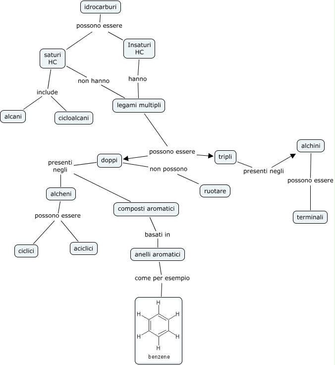 Questa Cmap, creata con IHMC CmapTools, contiene informazioni relative a: Classificazione dei idrocarburi Cristian, saturi HC include alcani, Insaturi HC hanno legami multipli, doppi non possono ruotare, alcheni possono essere aciclici, legami multipli possono essere doppi, legami multipli possono essere tripli, saturi HC include cicloalcani, alchini possono essere terminali, alcheni possono essere ciclici, tripli presenti negli alchini, doppi presenti negli composti aromatici, composti aromatici basati in anelli aromatici, saturi HC non hanno legami multipli, doppi presenti negli alcheni, anelli aromatici come per esempio, idrocarburi possono essere Insaturi HC, idrocarburi possono essere saturi HC