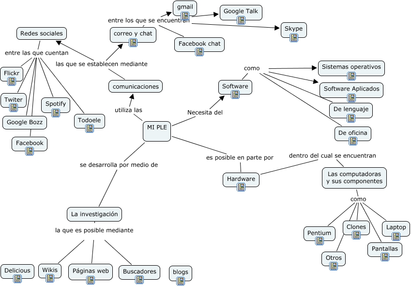 Este Cmap, tiene información relacionada con: ple magg_enlaces, Las computadoras y sus componentes como Otros, Software como De lenguaje, Software como Software Aplicados, La investigación la que es posible mediante Buscadores, MI PLE Necesita del Software, Hardware dentro del cual se encuentran Las computadoras y sus componentes, Las computadoras y sus componentes como Pantallas, Redes sociales entre las que cuentan Spotify, Redes sociales entre las que cuentan Todoele, Las computadoras y sus componentes como Laptop, comunicaciones las que se establecen mediante Redes sociales, Las computadoras y sus componentes como Pentium, Redes sociales entre las que cuentan Flickr, correo y chat entre los que se encuentran gmail, comunicaciones las que se establecen mediante correo y chat, correo y chat entre los que se encuentran Facebook chat, Redes sociales entre las que cuentan Google Bozz, Las computadoras y sus componentes como Clones, MI PLE utiliza las comunicaciones, La investigación la que es posible mediante Wikis