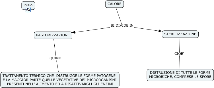 Questa Cmap, creata con IHMC CmapTools, contiene informazioni relative a: CALORE, CALORE SI DIVIDE IN PASTORIZZAZIONE, PASTORIZZAZIONE QUINDI TRATTAMENTO TERMICO CHE DISTRUGGE LE FORME PATOGENE E LA MAGGIOR PARTE QUELLE VEGETATIVE DEI MICRORGANISMI PRESENTI NELL' ALIMENTO ED A DISATTIVARGLI GLI ENZIMI, CALORE SI DIVIDE IN STERILIZZAZIONE, STERILIZZAZIONE CIOE' DISTRUZIONE DI TUTTE LE FORME MICROBICHE, COMPRESE LE SPORE