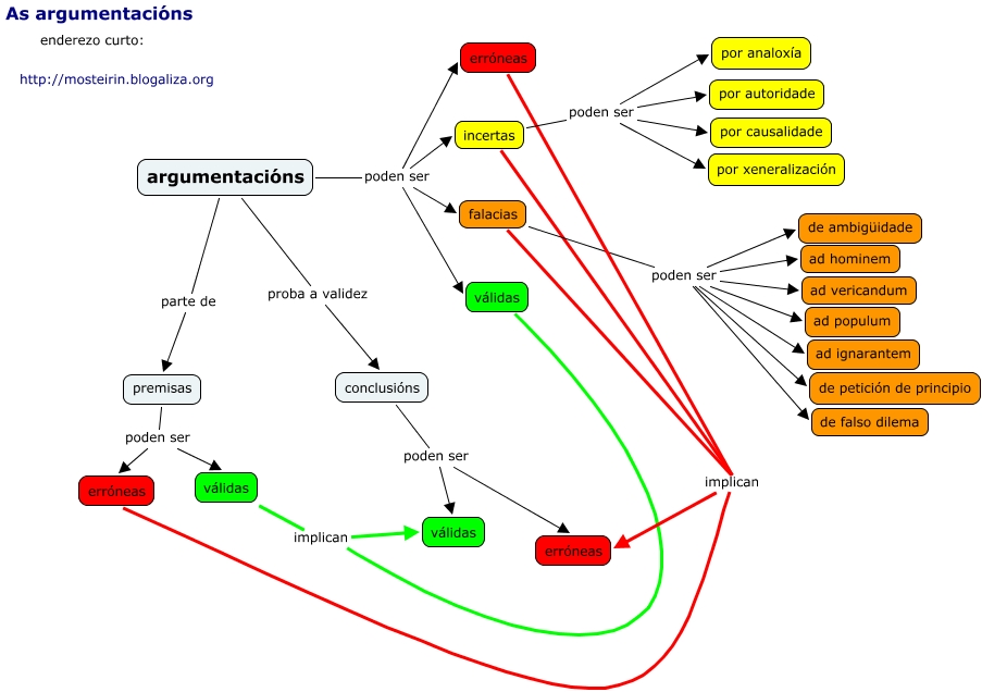 Este Cmap, tiene información relacionada con: argumentacións, erróneas implican erróneas, falacias implican erróneas, argumentacións proba a validez conclusións, premisas poden ser válidas, incertas poden ser por causalidade, falacias poden ser ad vericandum, erróneas implican erróneas, argumentacións poden ser válidas, argumentacións poden ser incertas, falacias poden ser ad hominem, incertas implican erróneas, premisas poden ser erróneas, válidas implican válidas, falacias poden ser de ambigüidade, falacias poden ser ad populum, conclusións poden ser válidas, válidas implican válidas, incertas poden ser por autoridade, argumentacións parte de premisas, argumentacións poden ser erróneas