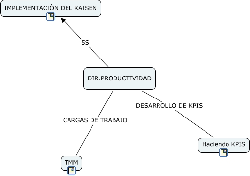 Este Cmap, tiene información relacionada con: EQUIPOUNICO, DIR.PRODUCTIVIDAD 5S IMPLEMENTACIÒN DEL KAISEN, DIR.PRODUCTIVIDAD CARGAS DE TRABAJO TMM, DIR.PRODUCTIVIDAD DESARROLLO DE KPIS Haciendo KPIS
