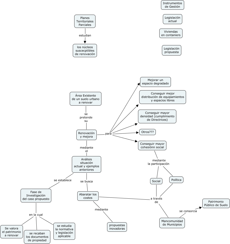 Este Cmap, tiene información relacionada con: Mapa Tesina Master de Urbanismo, Renovación y mejora para Conseguir mayor densidad (cumplimiento de Directrices), Planes Territoriales Parciales estudian los núcleos suscecptibles de renovación, Conseguir mayor cohesiónn social mediante la participación Social, Análisis situación actual y ejemplos anteriores se establece Fase de Investigación del caso propuesto, Área Existente de un suelo urbano a renovar se pretende su Renovación y mejora, Mancomunidad de Municipios se consorcia Patrimonio Público de Suelo, Análisis situación actual y ejemplos anteriores se busca Abaratar los costes, Renovación y mejora para Conseguir mejor distribución de equipamientos y espacios libres, Renovación y mejora mediante el Análisis situación actual y ejemplos anteriores, Social a través de Mancomunidad de Municipios, Conseguir mayor cohesiónn social mediante la participación Política, Renovación y mejora para Mejorar un espacio degradado, Fase de Investigación del caso propuesto en la cual Se valora el patrimonio a renovar, Abaratar los costes a través de Mancomunidad de Municipios, Renovación y mejora para Conseguir mayor cohesiónn social, Fase de Investigación del caso propuesto en la cual se estudia la normativa y legislación aplicable, Fase de Investigación del caso propuesto en la cual se recaban los documentos de propiedad, Renovación y mejora para Otros???, Abaratar los costes mediante propuestas inovadoras, Política a través de Mancomunidad de Municipios
