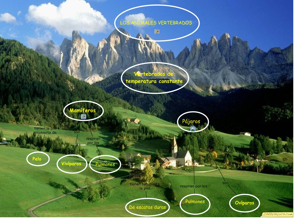 Este Cmap, tiene información relacionada con: LOS ANIMALES VERTEBRADOS, Mamíferos son Vivíparos, Mamíferos tienen la piel recubierta de Pelo, Pájaros respiran por los Pulmones, Pájaros son Ovíparos, LOS ANIMALES VERTEBRADOS Vertebrados de temperatura constante Mamíferos, Pájaros tienen recubierta la piel De escatas duras, Mamíferos respiran por los Pulmones, LOS ANIMALES VERTEBRADOS Vertebrados de temperatura constante Pájaros