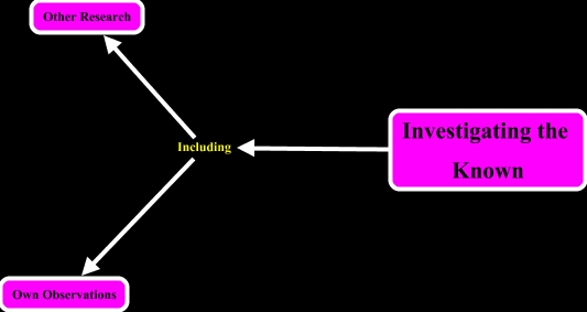 This Concept Map, created with IHMC CmapTools, has information related to: Inquiry Wheel Investigating, Investigating the Known Including Other Research, Investigating the Known Including Own Observations