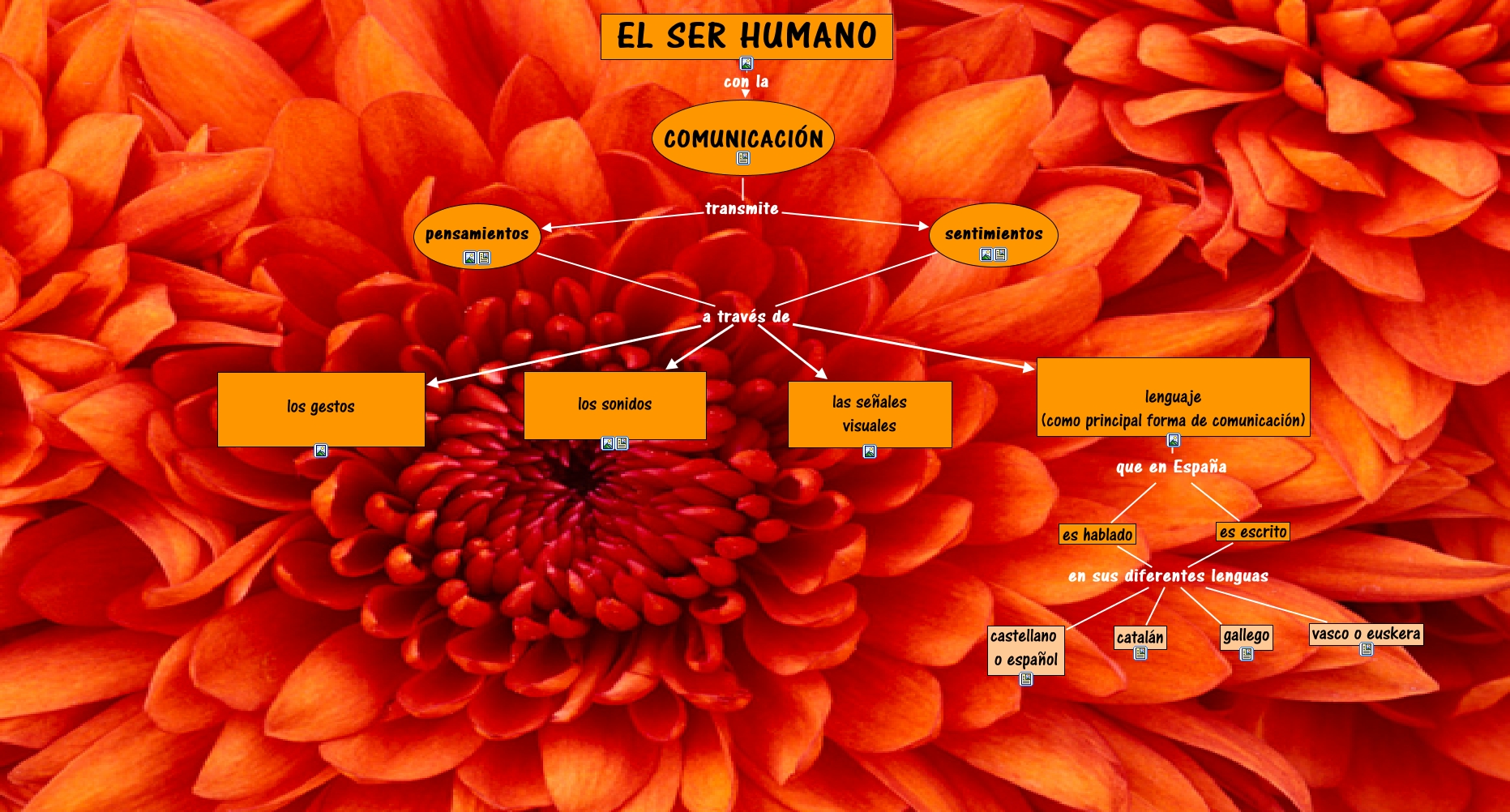 Este Cmap, tiene información relacionada con: lenguaje, es hablado en sus diferentes lenguas gallego, pensamientos a través de los sonidos, es hablado en sus diferentes lenguas es escrito, pensamientos a través de los gestos, es hablado en sus diferentes lenguas vasco o euskera, pensamientos a través de lenguaje (como principal forma de comunicación), lenguaje (como principal forma de comunicación) que en España es escrito, es hablado en sus diferentes lenguas castellano o español, pensamientos a través de las señales visuales, COMUNICACIÓN transmite sentimientos, pensamientos a través de sentimientos, COMUNICACIÓN transmite pensamientos, lenguaje (como principal forma de comunicación) que en España es hablado, EL SER HUMANO con la COMUNICACIÓN, es hablado en sus diferentes lenguas catalán