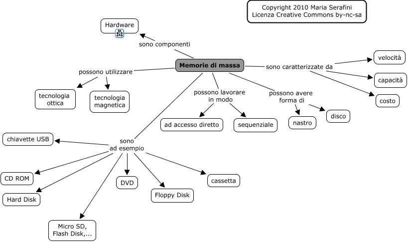 Questa Cmap, creata con IHMC CmapTools, contiene informazioni relative a: memoriemassa, Memorie di massa sono ad esempio chiavette USB, Memorie di massa possono lavorare in modo ad accesso diretto, Memorie di massa possono lavorare in modo sequenziale, Memorie di massa sono ad esempio Micro SD, Flash Disk,..., Memorie di massa sono ad esempio DVD, Memorie di massa sono componenti Hardware, Memorie di massa possono utilizzare tecnologia ottica, Memorie di massa sono ad esempio Floppy Disk, Memorie di massa sono caratterizzate da capacità, Memorie di massa possono utilizzare tecnologia magnetica, Memorie di massa sono ad esempio Hard Disk, Memorie di massa possono avere forma di nastro, Memorie di massa sono ad esempio CD ROM, Memorie di massa possono avere forma di disco, Memorie di massa sono caratterizzate da velocità, Memorie di massa sono caratterizzate da costo, Memorie di massa sono ad esempio cassetta