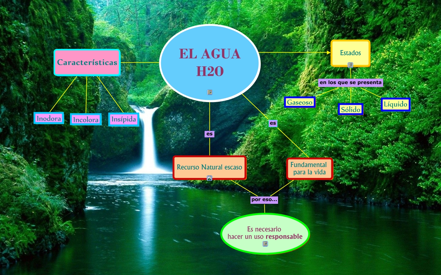 Este Cmap, tiene información relacionada con: EL AGUA, Recurso Natural escaso por eso... Es necesario hacer un uso responsable, EL AGUA H2O Características Insípida, Fundamental para la vida por eso... Es necesario hacer un uso responsable, Estados en los que se presenta Sólido, Estados en los que se presenta Líquido, EL AGUA H2O Características Inodora, Estados en los que se presenta Gaseoso, EL AGUA H2O ???? Estados, EL AGUA H2O es Recurso Natural escaso, EL AGUA H2O es Fundamental para la vida, EL AGUA H2O Características Incolora