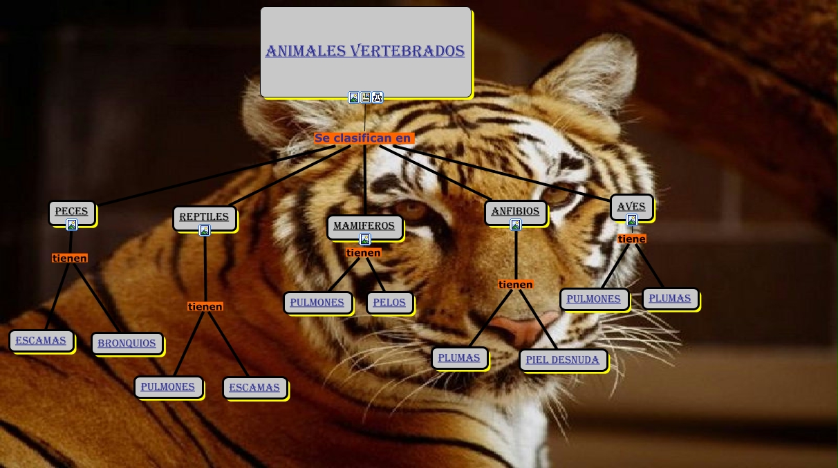 Este Cmap, tiene información relacionada con: animales, ANIMALES VERTEBRADOS Se clasifican en aves, mamiferos tienen pelos, ANIMALES VERTEBRADOS Se clasifican en peces, aves tiene plumas, peces tienen escamas, reptiles tienen escamas, ANIMALES VERTEBRADOS Se clasifican en anfibios, anfibios tienen plumas, anfibios tienen piel desnuda, ANIMALES VERTEBRADOS Se clasifican en mamiferos, peces tienen Bronquios, reptiles tienen pulmones, aves tiene pulmones, mamiferos tienen pulmones, ANIMALES VERTEBRADOS Se clasifican en reptiles