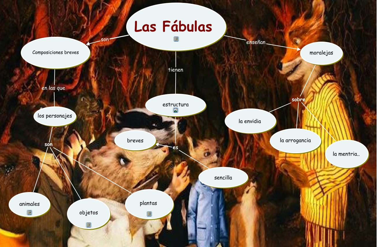 Este Cmap, tiene información relacionada con: Las fábulas_Paula_Viota_de_las_Cuevas, Composiciones breves en las que los personajes, Las Fábulas enseñan moralejas, moralejas sobre la envidia, estructura es sencilla, los personajes son plantas, los personajes son animales, moralejas sobre la mentria.., los personajes son objetos, estructura es breves, moralejas sobre la arrogancia, Las Fábulas tienen estructura, Las Fábulas son Composiciones breves