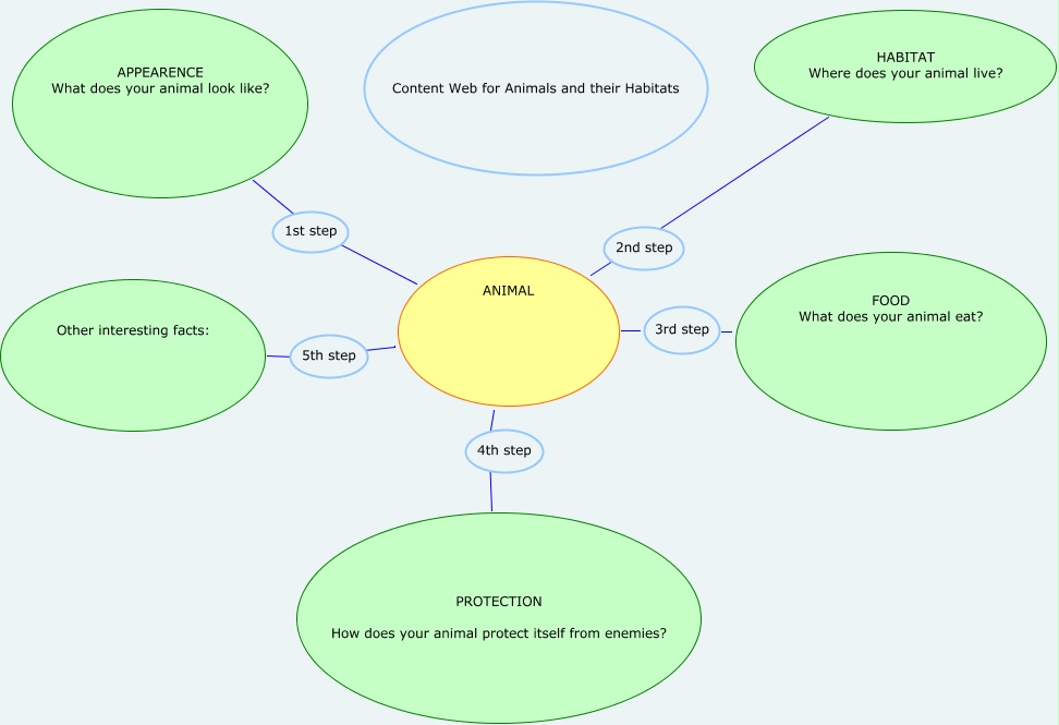 Este Cmap, tiene información relacionada con: animal habitats, FOOD What does your animal eat? 3rd step ANIMAL, ANIMAL PROTECTION How does your animal protect itself from enemies?, ANIMAL Other interesting facts:, ANIMAL HABITAT Where does your animal live?, ANIMAL APPEARENCE What does your animal look like?