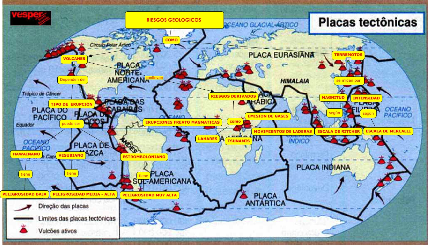 Este Cmap, tiene información relacionada con: Riesgos Geologicos, puede ser ???? ESTROMBOLONIANO, como ???? LAHARES, se miden por ???? INTENSIDAD, tiene ???? PELIGROSIDAD MEDIA - ALTA, se miden por MAGNITUD MAGNITUD, COMO ???? VOLCANES, según ???? ESCALA DE RITCHER, VOLCANES conllevan RIESGOS DERIVADOS, tiene ???? PELIGROSIDAD BAJA, TERREMOTOS ???? se miden por, COMO ???? TERREMOTOS, según ESCALA DE MERCALLI, TIPO DE ERUPCIÓN ???? puede ser, RIESGOS GEOLOGICOS ???? COMO, TIPO DE ERUPCIÓN ???? VESUBIANO, Dependen del ???? TIPO DE ERUPCIÓN, INTENSIDAD ???? según, ESTROMBOLONIANO ???? tiene, VESUBIANO ???? tiene, tiene ???? PELIGROSIDAD MUY ALTA