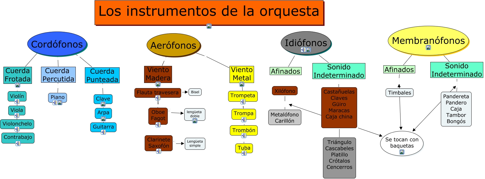 Este Cmap, tiene información relacionada con: instrumentos, Trompa Trombón, Idiófonos Afinados, Xilófono Metalófono Carillón, Se tocan con baquetas Pandereta Pandero Caja Tambor Bongós, Se tocan con baquetas Timbales, Se tocan con baquetas Metalófono Carillón, Cordófonos Cuerda Punteada, Flauta travesera ???? Bisel, Flauta travesera Oboe Fagot, Viento Metal Trompeta, Clarinete Saxofón Lengüeta simple, Aerófonos Viento Metal, Membranófonos Afinados, Viola Violonchelo, Trompeta Trompa, Arpa Guitarra, Idiófonos Sonido Indeterminado, Oboe Fagot lengüeta doble, Cuerda Punteada Clave, Cordófonos Cuerda Frotada