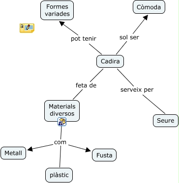 Aquest mapa conceptual conté informació relacionada amb: Cadira, Cadira sol ser Còmoda, Materials diversos com plàstic, Cadira serveix per Seure, Materials diversos com Metall, Materials diversos com Fusta, Cadira feta de Materials diversos, Cadira pot tenir Formes variades
