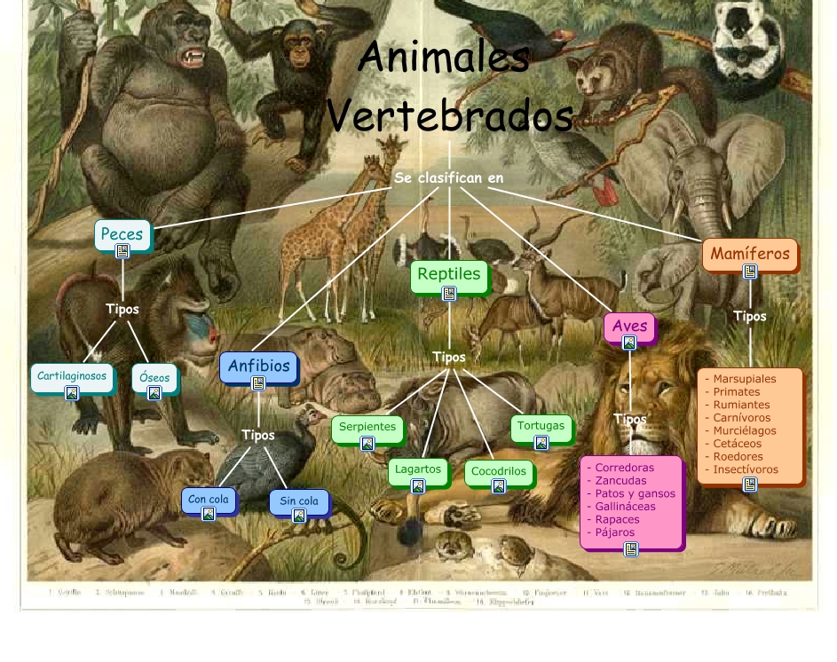 Este Cmap, tiene información relacionada con: AnimalesVertebrados_HectorHenales, Mamíferos Tipos - Marsupiales - Primates - Rumiantes - Carnívoros - Murciélagos - Cetáceos - Roedores - Insectívoros, Reptiles Tipos Serpientes, Reptiles Tipos Lagartos, Peces Tipos Cartilaginosos, Reptiles Tipos Cocodrilos, Aves Tipos - Corredoras - Zancudas - Patos y gansos - Gallináceas - Rapaces - Pájaros, Animales Vertebrados Se clasifican en Aves, Anfibios Tipos Con cola, Animales Vertebrados Se clasifican en Reptiles, Animales Vertebrados Se clasifican en Mamíferos, Peces Tipos Óseos, Animales Vertebrados Se clasifican en Anfibios, Anfibios Tipos Sin cola, Reptiles Tipos Tortugas, Animales Vertebrados Se clasifican en Peces