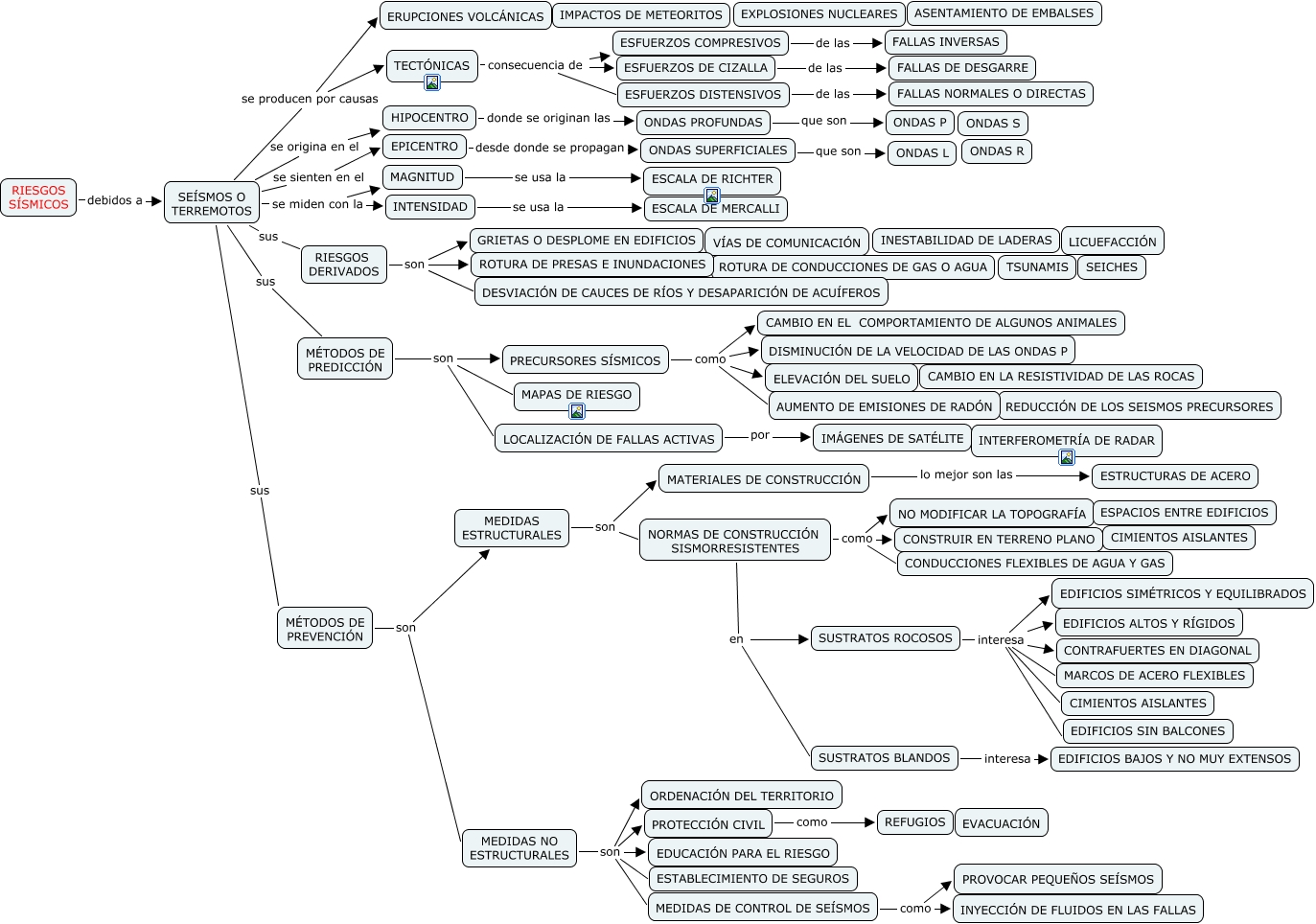 Este Cmap, tiene información relacionada con: A6 RIESGOS SÍSMICOS, MEDIDAS NO ESTRUCTURALES son ORDENACIÓN DEL TERRITORIO, RIESGOS DERIVADOS son DESVIACIÓN DE CAUCES DE RÍOS Y DESAPARICIÓN DE ACUÍFEROS, SEÍSMOS O TERREMOTOS se producen por causas TECTÓNICAS, MEDIDAS NO ESTRUCTURALES son MEDIDAS DE CONTROL DE SEÍSMOS, MÉTODOS DE PREDICCIÓN son PRECURSORES SÍSMICOS, SEÍSMOS O TERREMOTOS se miden con la MAGNITUD, MEDIDAS ESTRUCTURALES son MATERIALES DE CONSTRUCCIÓN, EPICENTRO desde donde se propagan ONDAS SUPERFICIALES, ESFUERZOS COMPRESIVOS de las FALLAS INVERSAS, SEÍSMOS O TERREMOTOS sus MÉTODOS DE PREDICCIÓN, PRECURSORES SÍSMICOS como DISMINUCIÓN DE LA VELOCIDAD DE LAS ONDAS P, NORMAS DE CONSTRUCCIÓN SISMORRESISTENTES como CONSTRUIR EN TERRENO PLANO, ESFUERZOS DE CIZALLA de las FALLAS DE DESGARRE, NORMAS DE CONSTRUCCIÓN SISMORRESISTENTES como NO MODIFICAR LA TOPOGRAFÍA, MEDIDAS DE CONTROL DE SEÍSMOS como INYECCIÓN DE FLUIDOS EN LAS FALLAS, PROTECCIÓN CIVIL como REFUGIOS, SEÍSMOS O TERREMOTOS se miden con la INTENSIDAD, NORMAS DE CONSTRUCCIÓN SISMORRESISTENTES como CONDUCCIONES FLEXIBLES DE AGUA Y GAS, SUSTRATOS ROCOSOS interesa MARCOS DE ACERO FLEXIBLES, MAGNITUD se usa la ESCALA DE RICHTER