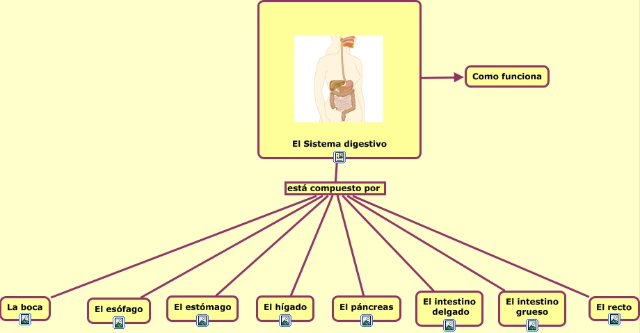 Este Cmap, tiene información relacionada con: el Sistema digestivo, El Sistema digestivo está compuesto por El intestino delgado, El Sistema digestivo ???? Como funciona, El Sistema digestivo está compuesto por El hígado, El Sistema digestivo está compuesto por El páncreas, El Sistema digestivo está compuesto por El intestino grueso, El Sistema digestivo está compuesto por La boca, El Sistema digestivo está compuesto por El recto, El Sistema digestivo está compuesto por El estómago, El Sistema digestivo está compuesto por El esófago