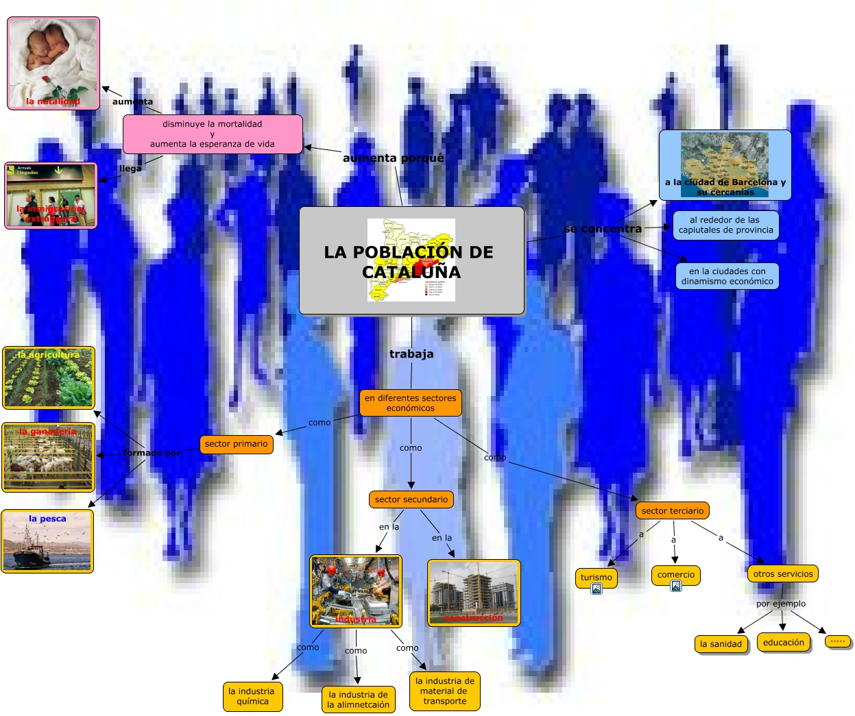 Este Cmap, tiene información relacionada con: La población de Cataluña, en diferentes sectores económicos como sector secundario, sector secundario en la industria, industria como la industria de la alimnetcaión, sector terciario a comercio, industria como la industria de material de transporte, sector secundario en la construcción, otros servicios por ejemplo educación, sector terciario a turismo, sector primario formado por la agricultura, sector primario formado por la ganadería, en diferentes sectores económicos como sector primario, LA POBLACIÓN DE CATALUÑA se concentra a la ciudad de Barcelona y su cercanías, LA POBLACIÓN DE CATALUÑA trabaja en diferentes sectores económicos, LA POBLACIÓN DE CATALUÑA se concentra al rededor de las capiutales de provincia, otros servicios por ejemplo ....., LA POBLACIÓN DE CATALUÑA aumenta porqué disminuye la mortalidad y aumenta la esperanza de vida, LA POBLACIÓN DE CATALUÑA se concentra en la ciudades con dinamismo económico, disminuye la mortalidad y aumenta la esperanza de vida llega la inmigración extrangera, sector primario formado por la pesca, sector terciario a otros servicios