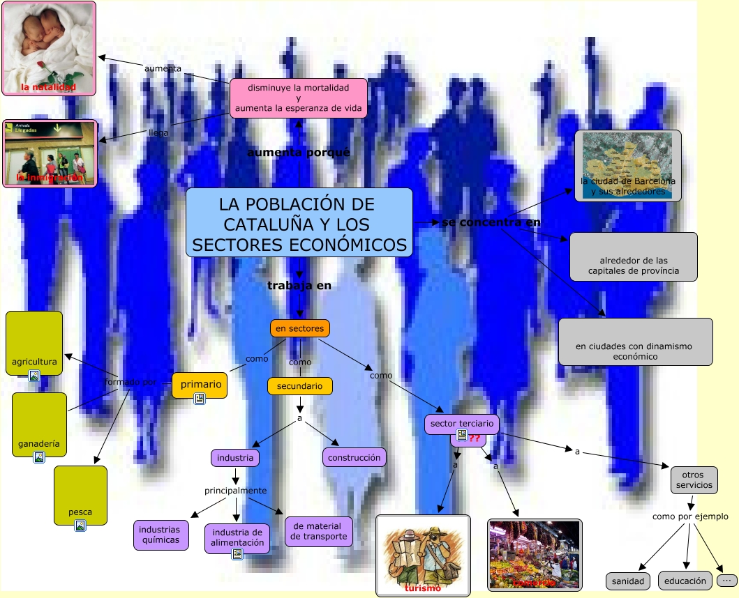 Este Cmap, tiene información relacionada con: Población Cataluña y sectores económicos, primario formado por ganadería, otros servicios como por ejemplo sanidad, sector terciario a comercio, secundario a industria, LA POBLACIÓN DE CATALUÑA Y LOS SECTORES ECONÓMICOS se concentra en alrededor de las capitales de província, LA POBLACIÓN DE CATALUÑA Y LOS SECTORES ECONÓMICOS aumenta porqué disminuye la mortalidad y aumenta la esperanza de vida, en sectores como secundario, industria principalmente industrias químicas, otros servicios como por ejemplo ..., industria principalmente industria de alimentación, disminuye la mortalidad y aumenta la esperanza de vida aumenta la natalidad, industria principalmente de material de transporte, otros servicios como por ejemplo educación, en sectores como primario, primario formado por pesca, sector terciario a otros servicios, LA POBLACIÓN DE CATALUÑA Y LOS SECTORES ECONÓMICOS se concentra en la ciudad de Barcelona y sus alrededores, LA POBLACIÓN DE CATALUÑA Y LOS SECTORES ECONÓMICOS se concentra en en ciudades con dinamismo económico, LA POBLACIÓN DE CATALUÑA Y LOS SECTORES ECONÓMICOS trabaja en en sectores, sector terciario a turismo