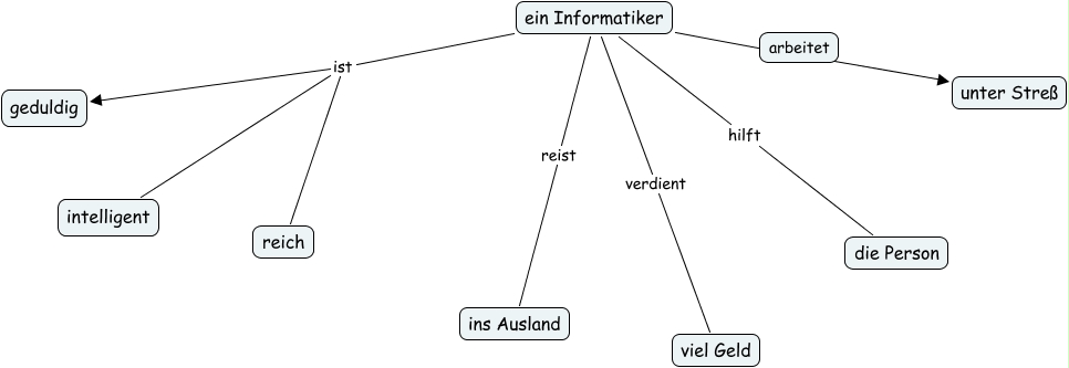 Questa Cmap, creata con IHMC CmapTools, contiene informazioni relative a: Informatiker, ein Informatiker ist reich, ein Informatiker ???? unter Streß, ein Informatiker ist geduldig, ein Informatiker hilft die Person, ein Informatiker verdient viel Geld, ein Informatiker ist intelligent, ein Informatiker reist ins Ausland