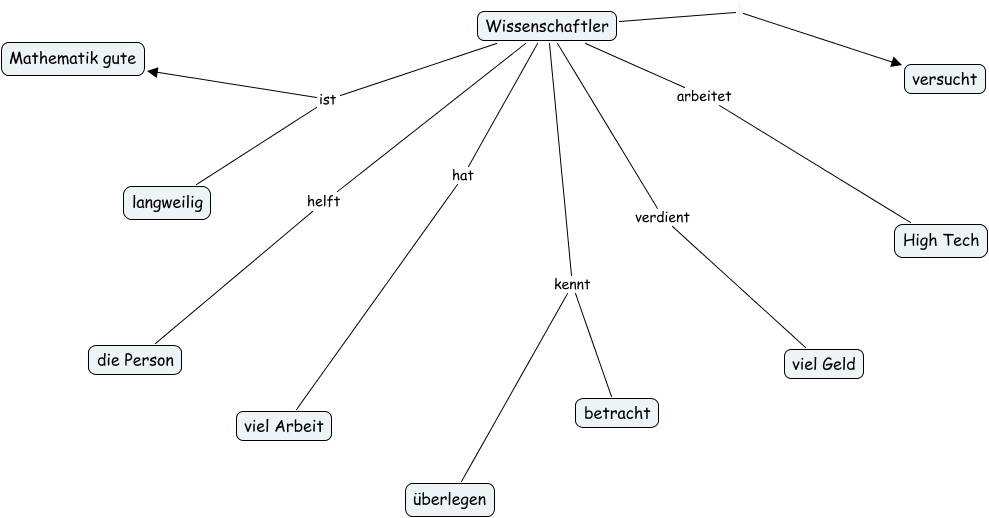 Questa Cmap, creata con IHMC CmapTools, contiene informazioni relative a: Wissenschaftler, Wissenschaftler kennt überlegen, Wissenschaftler kennt betracht, Wissenschaftler ist langweilig, Wissenschaftler arbeitet High Tech, Wissenschaftler hat viel Arbeit, Wissenschaftler versucht, Wissenschaftler helft die Person, Wissenschaftler verdient viel Geld, Wissenschaftler ist Mathematik gute
