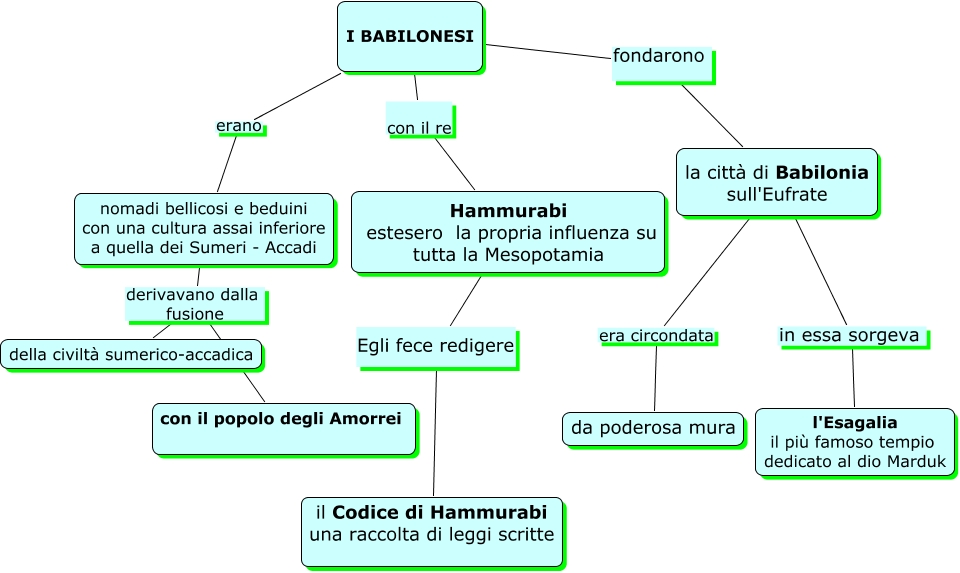 Questa Cmap, creata con IHMC CmapTools, contiene informazioni relative a: Babilonesi (s.m), la città di Babilonia sull'Eufrate in essa sorgeva l'Esagalia il più famoso tempio dedicato al dio Marduk, nomadi bellicosi e beduini con una cultura assai inferiore a quella dei Sumeri - Accadi derivavano dalla fusione con il popolo degli Amorrei, Hammurabi estesero la propria influenza su tutta la Mesopotamia Egli fece redigere il Codice di Hammurabi una raccolta di leggi scritte, la città di Babilonia sull'Eufrate era circondata da poderosa mura, nomadi bellicosi e beduini con una cultura assai inferiore a quella dei Sumeri - Accadi derivavano dalla fusione della civiltà sumerico-accadica, I BABILONESI fondarono la città di Babilonia sull'Eufrate, I BABILONESI erano nomadi bellicosi e beduini con una cultura assai inferiore a quella dei Sumeri - Accadi, I BABILONESI con il re Hammurabi estesero la propria influenza su tutta la Mesopotamia