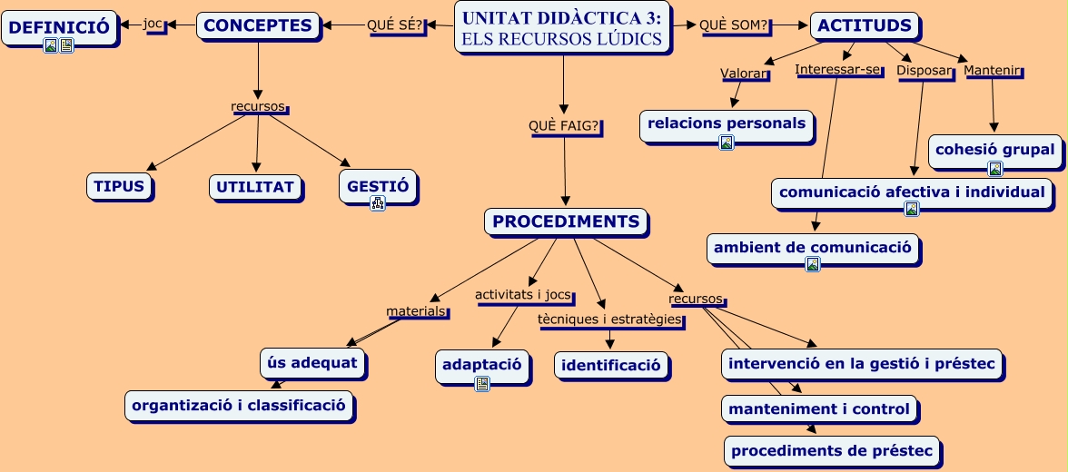 Este Cmap, tiene información relacionada con: 2. esquema unitat didàctica 3, PROCEDIMENTS recursos procediments de préstec, UNITAT DIDÀCTICA 3: ELS RECURSOS LÚDICS QUÈ FAIG? PROCEDIMENTS, PROCEDIMENTS recursos manteniment i control, PROCEDIMENTS tècniques i estratègies identificació, CONCEPTES recursos TIPUS, ACTITUDS Interessar-se ambient de comunicació, UNITAT DIDÀCTICA 3: ELS RECURSOS LÚDICS QUÈ SOM? ACTITUDS, ACTITUDS Disposar comunicació afectiva i individual, UNITAT DIDÀCTICA 3: ELS RECURSOS LÚDICS QUÉ SÉ? CONCEPTES, PROCEDIMENTS materials organtizació i classificació, ACTITUDS Valorar relacions personals, CONCEPTES recursos GESTIÓ, CONCEPTES recursos UTILITAT, ACTITUDS Mantenir cohesió grupal, PROCEDIMENTS recursos intervenció en la gestió i préstec, PROCEDIMENTS activitats i jocs adaptació, CONCEPTES joc DEFINICIÓ, PROCEDIMENTS materials ús adequat