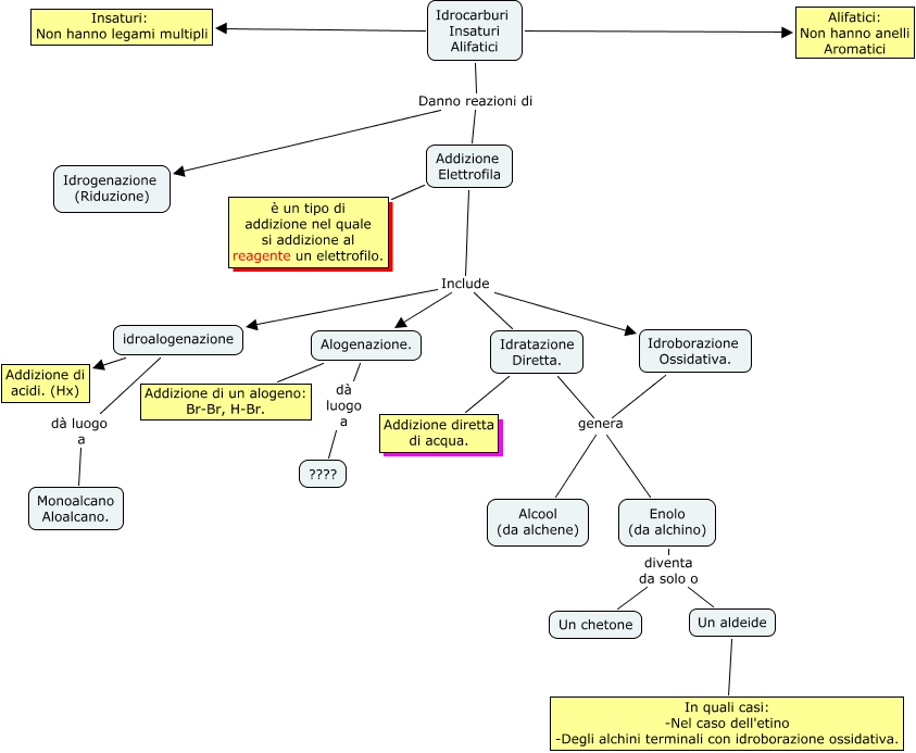 Questa Cmap, creata con IHMC CmapTools, contiene informazioni relative a: Insaturi, Idratazione Diretta. genera Alcool (da alchene), Idrocarburi Insaturi Alifatici Danno reazioni di Addizione Elettrofila, Idratazione Diretta. Addizione diretta di acqua., idroalogenazione Addizione di acidi. (Hx), Enolo (da alchino) diventa da solo o Un aldeide, Idroborazione Ossidativa. genera Enolo (da alchino), Alogenazione. dà luogo a ????, Addizione Elettrofila Include Alogenazione., Enolo (da alchino) diventa da solo o Un chetone, Idroborazione Ossidativa. genera Alcool (da alchene), Idrocarburi Insaturi Alifatici Insaturi: Non hanno legami multipli, Idrocarburi Insaturi Alifatici Danno reazioni di Idrogenazione (Riduzione), Addizione Elettrofila Include Idroborazione Ossidativa., Addizione Elettrofila Include idroalogenazione, idroalogenazione dà luogo a Monoalcano Aloalcano., Idratazione Diretta. genera Enolo (da alchino), Alogenazione. Addizione di un alogeno: Br-Br, H-Br., Idrocarburi Insaturi Alifatici Alifatici: Non hanno anelli Aromatici, Addizione Elettrofila è un tipo di addizione nel quale si addizione al reagente un elettrofilo., Addizione Elettrofila Include Idratazione Diretta.