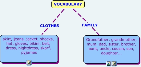 Este Cmap, tiene información relacionada con: VACABULARY, VOCABULARY CLOTHES skirt, jeans, jacket, shocks, hat, gloves, bikini, belt, dress, nightdress, skarf, pyjamas, VOCABULARY FAMILY Grandfather, grandmother, mum, dad, sister, brother, aunt, uncle, cousin, son, doughter...